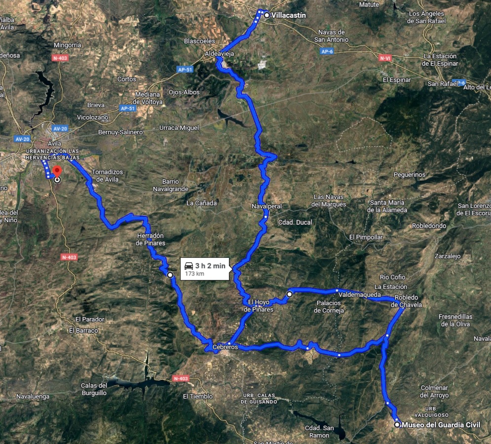 Con unos pocos golpes de gas llegaremos a Navas del Rey, donde nos espera la visita concertada que da sentido a esta ruta: el Museo del Guardia Civil, situado junto al cuartel del cuerpo.