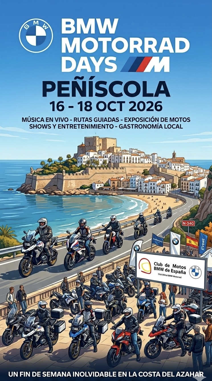 Los BMW Motorrad Days 2026 se celebrarán en Peñíscola (Castellón), España, del 16 al 18 de octubre de 2026.