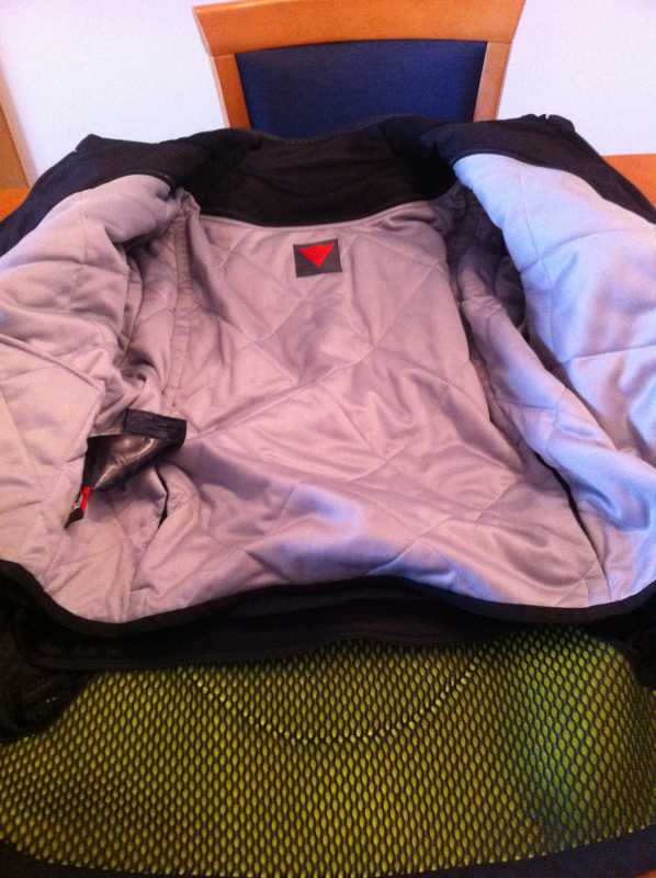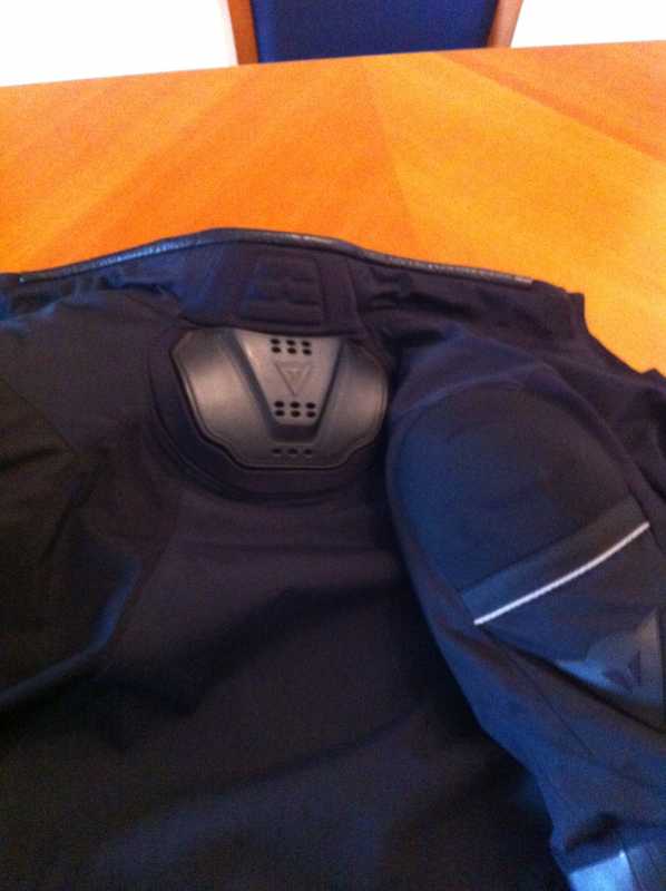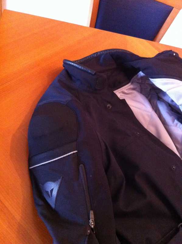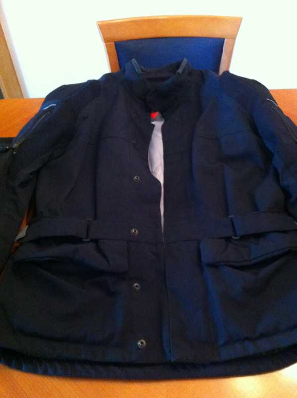 2.- Chaqueta Dainese Goretex talla 54, era lo tope de gama de hace unos años, el Goretex está en la cordura exterior de forma que el agua no cala ni la chaqueta aumenta de peso con la lluvia. Lleva protecciones en hombros, codos y cuello y soporte cervical para sujetar el casco en largas tiradas. Tiene la posibilidad de instalar espaldera de chaqueta o bien la espaldera grande de competición con su faja y todo. En venta por 130€