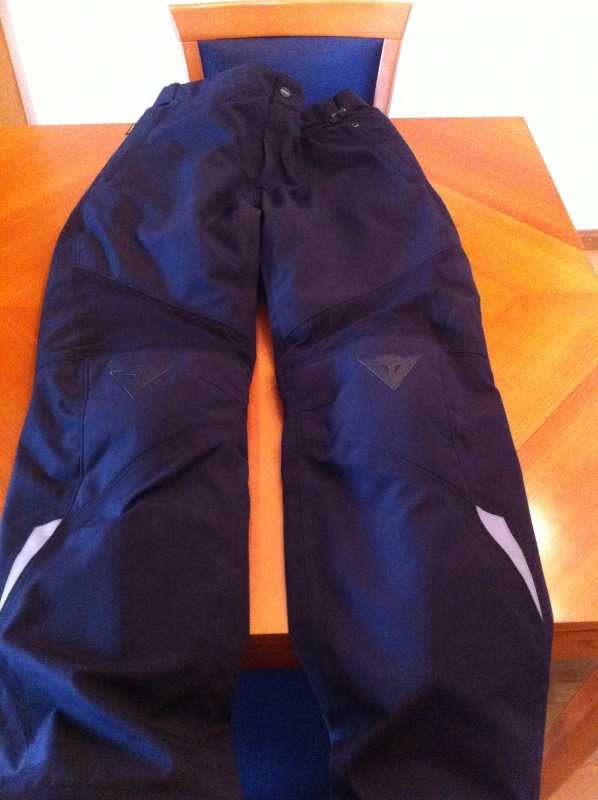 3.- Pantalón Dainese Goretex talla 56, pero ojo retocado de cintura para persona delgada, mismas caracteristicas que la chaqueta en cuanto al Goretex y la cordura, tiene protecciones en rodilla, espinilla y blandas en caderas, incluye forro de invierno. Puesto un par de veces. Vendo por 125€